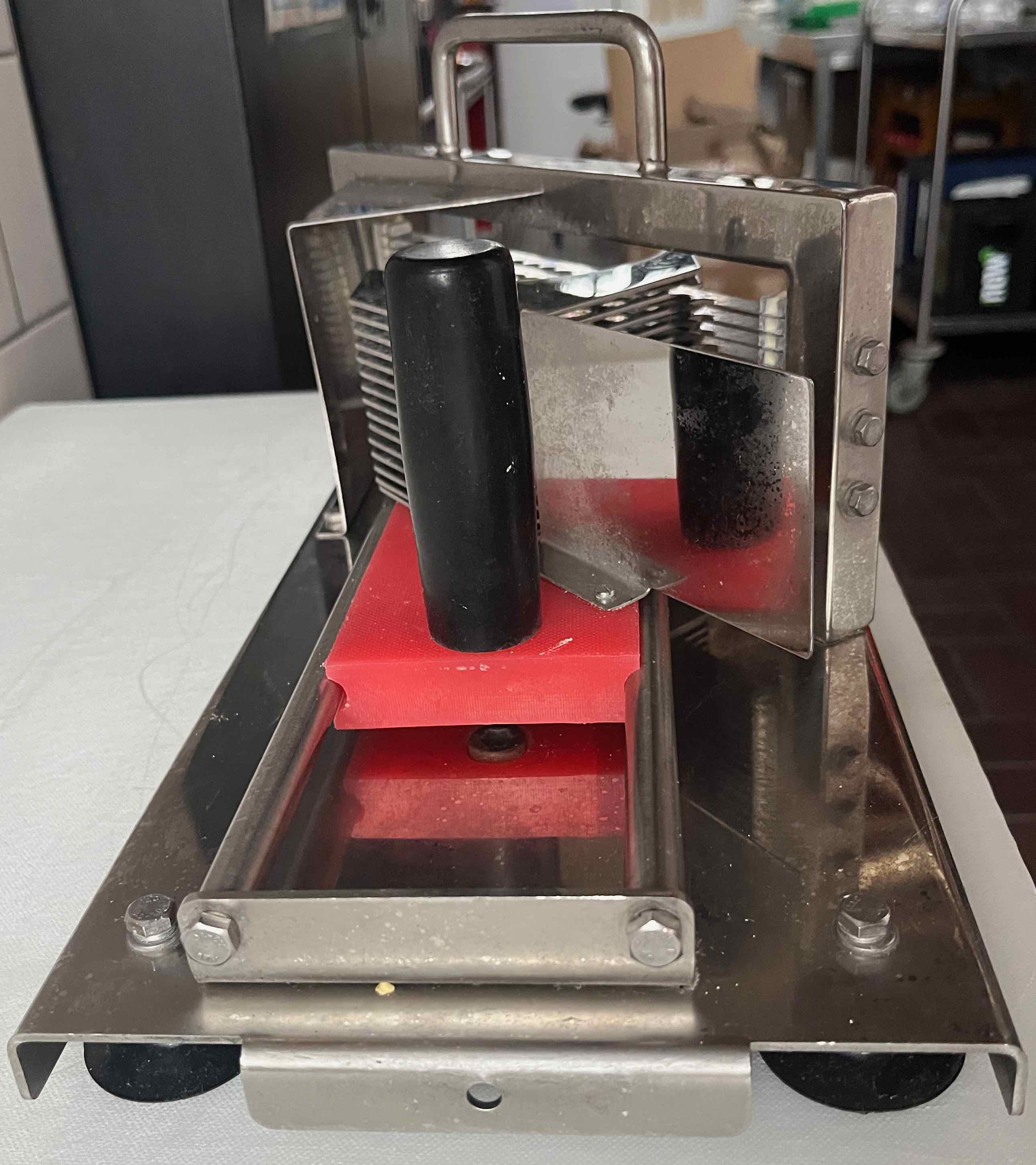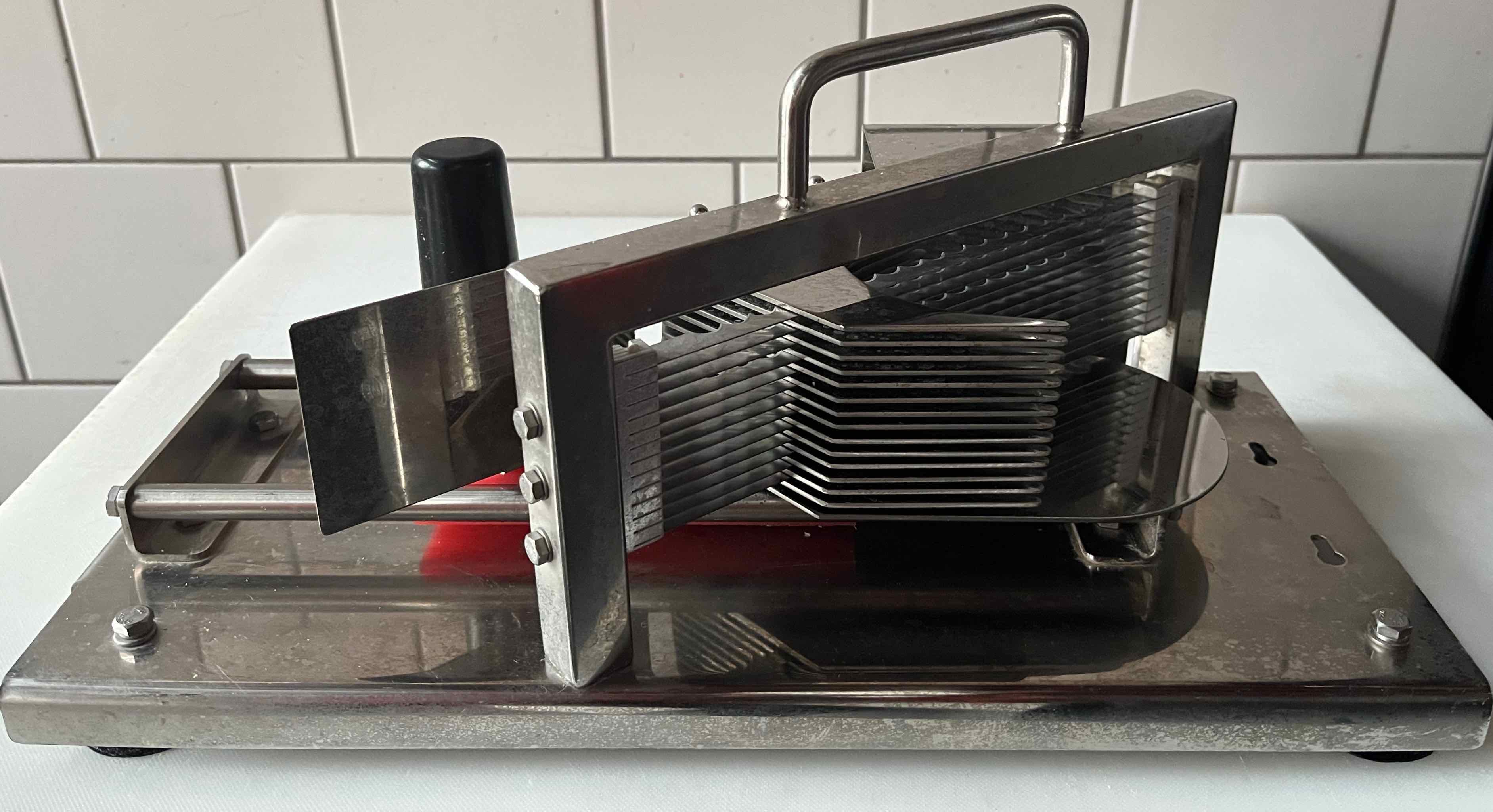 Außerdem haben wir noch einen Tomatenschneider mit glatter Schneiden, das Modell aus dem Hause Subway