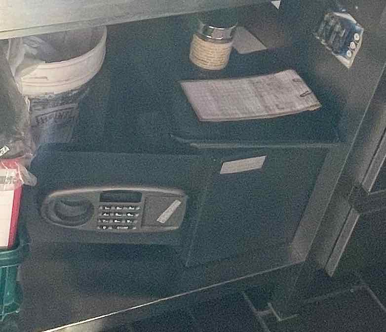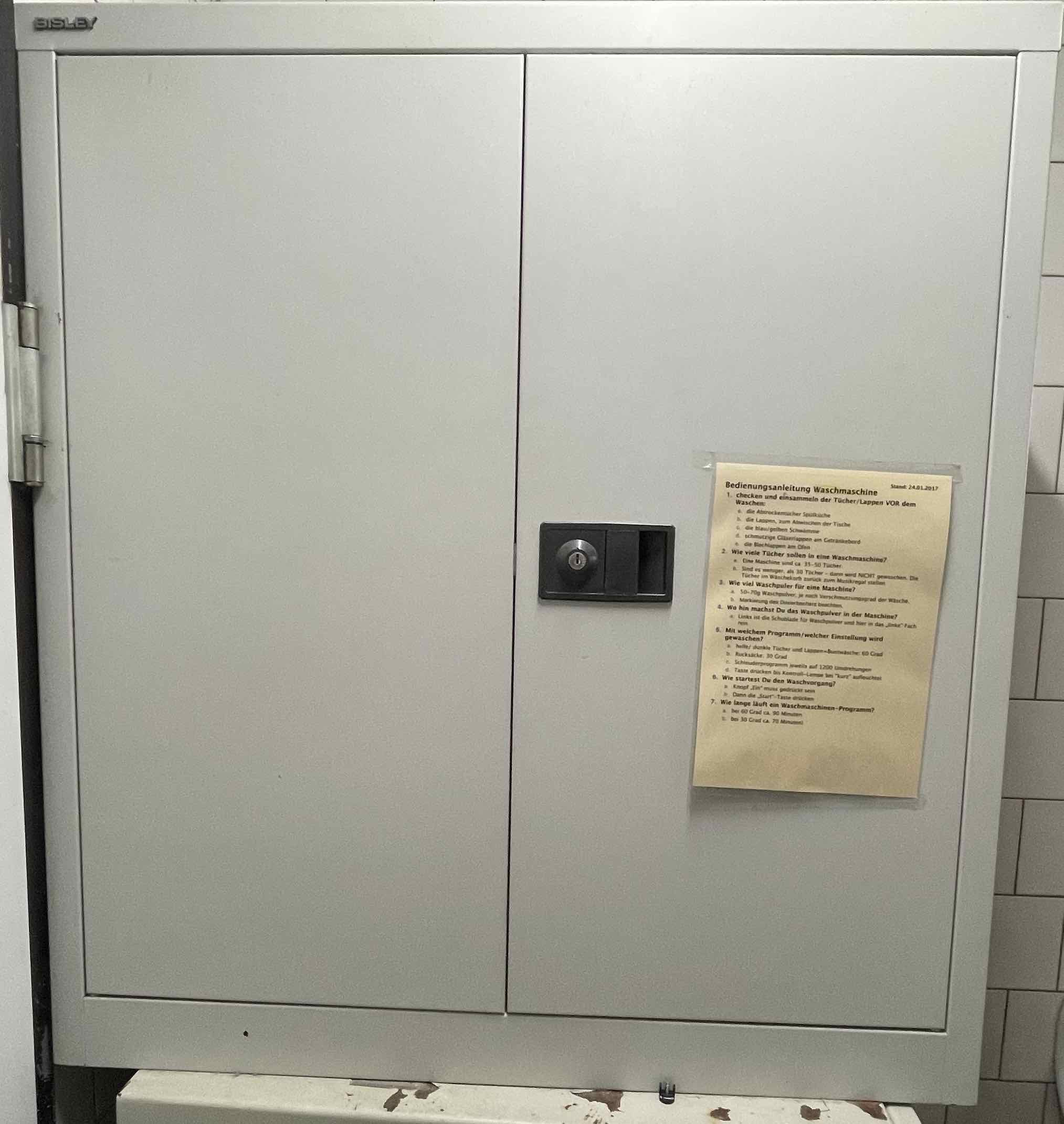 Dieser kleine Kleidertresor dient bei uns dazu,die Geldscheine der Wechselgeldkasse über Nacht sicher einzuschließen.