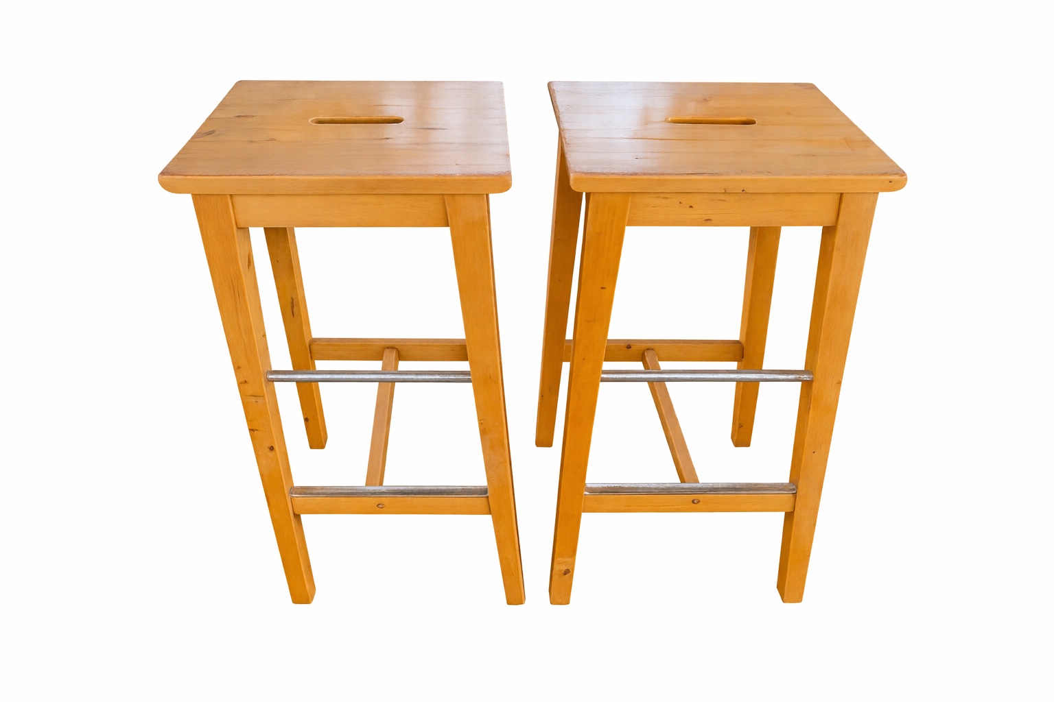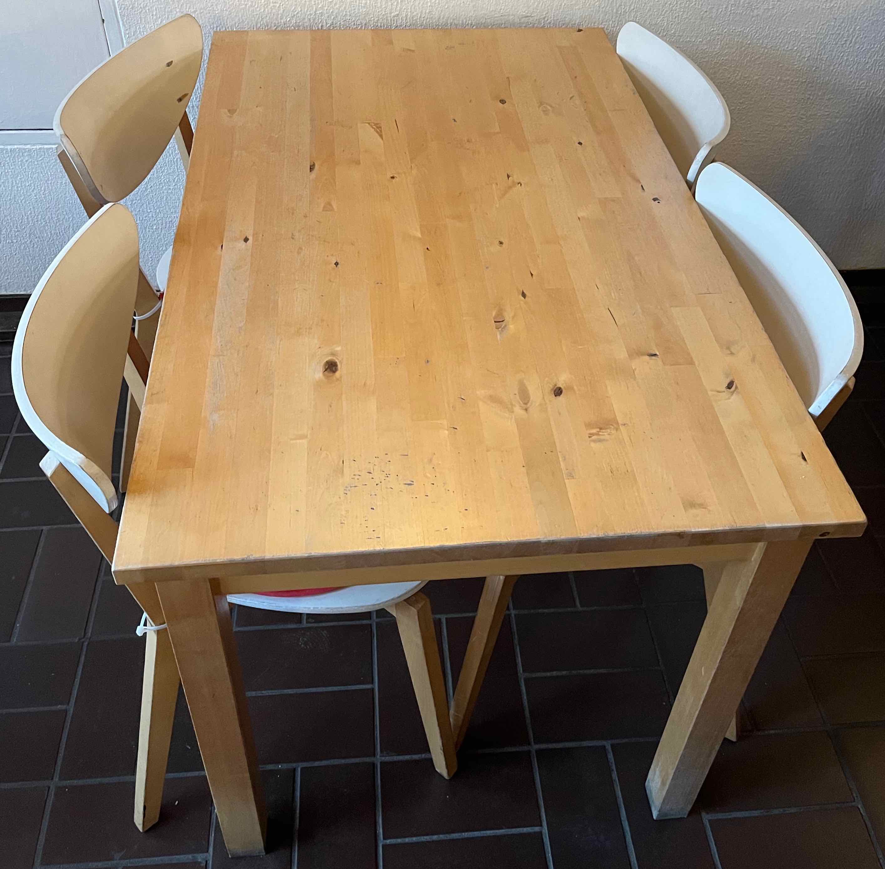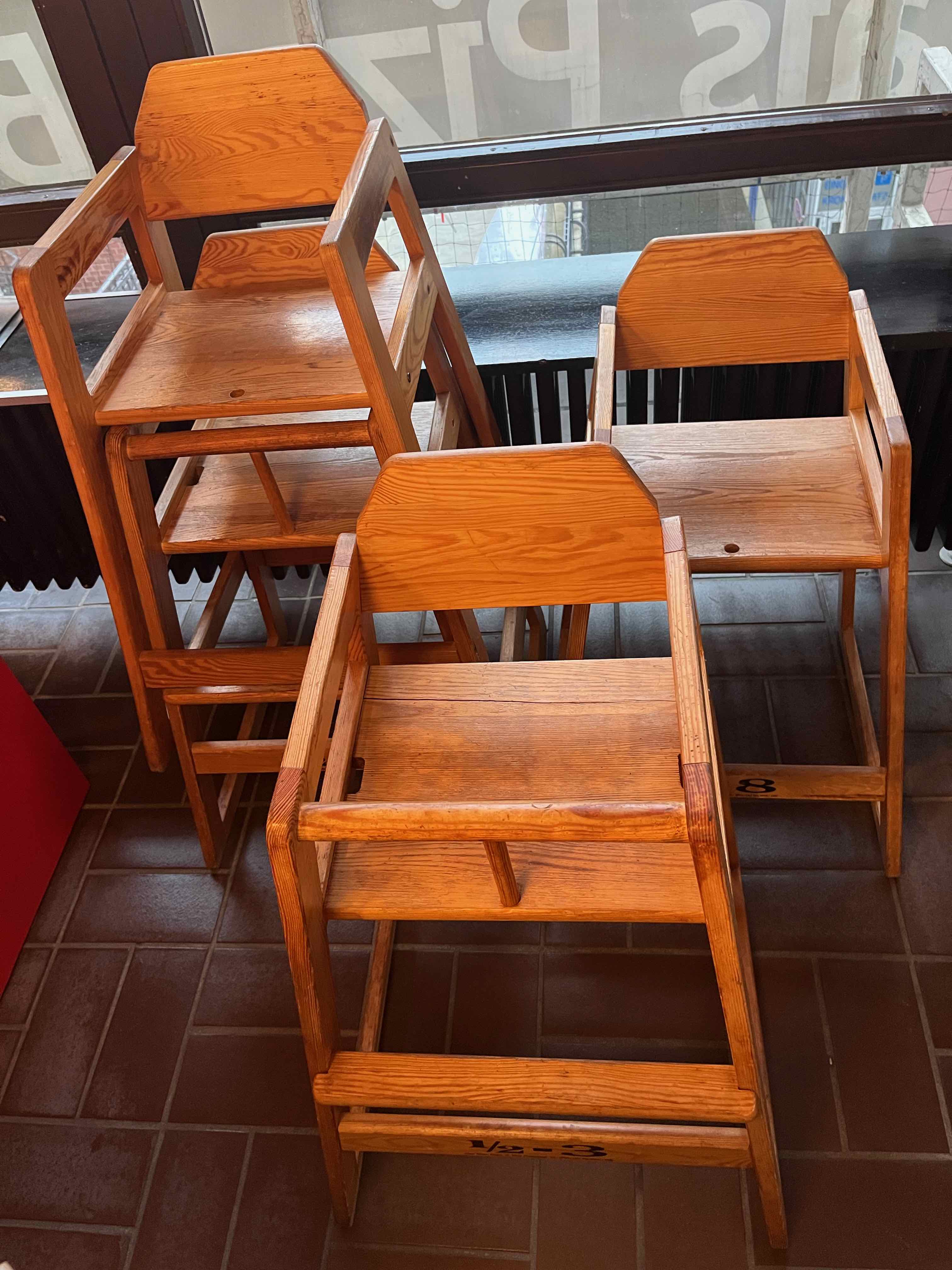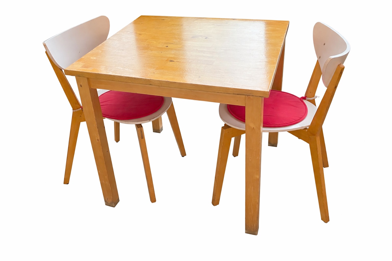 Wir haben 8 Zweier-Holztische und 8 Vierer-Holztische: