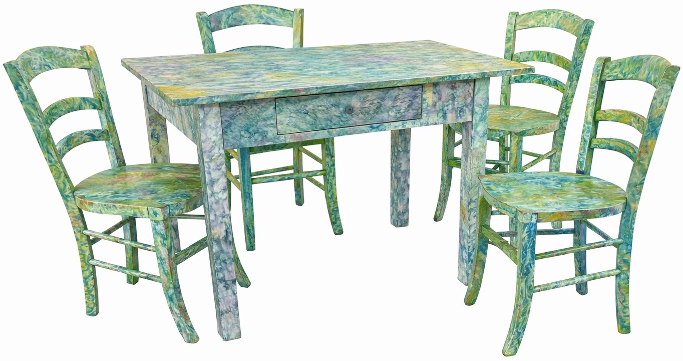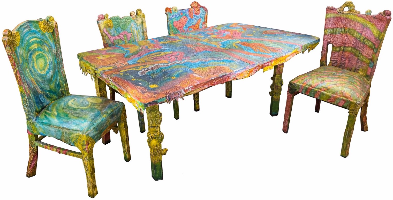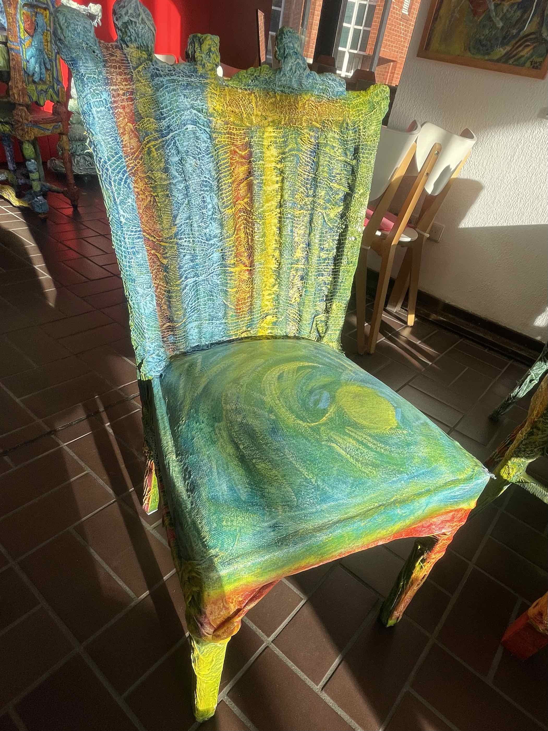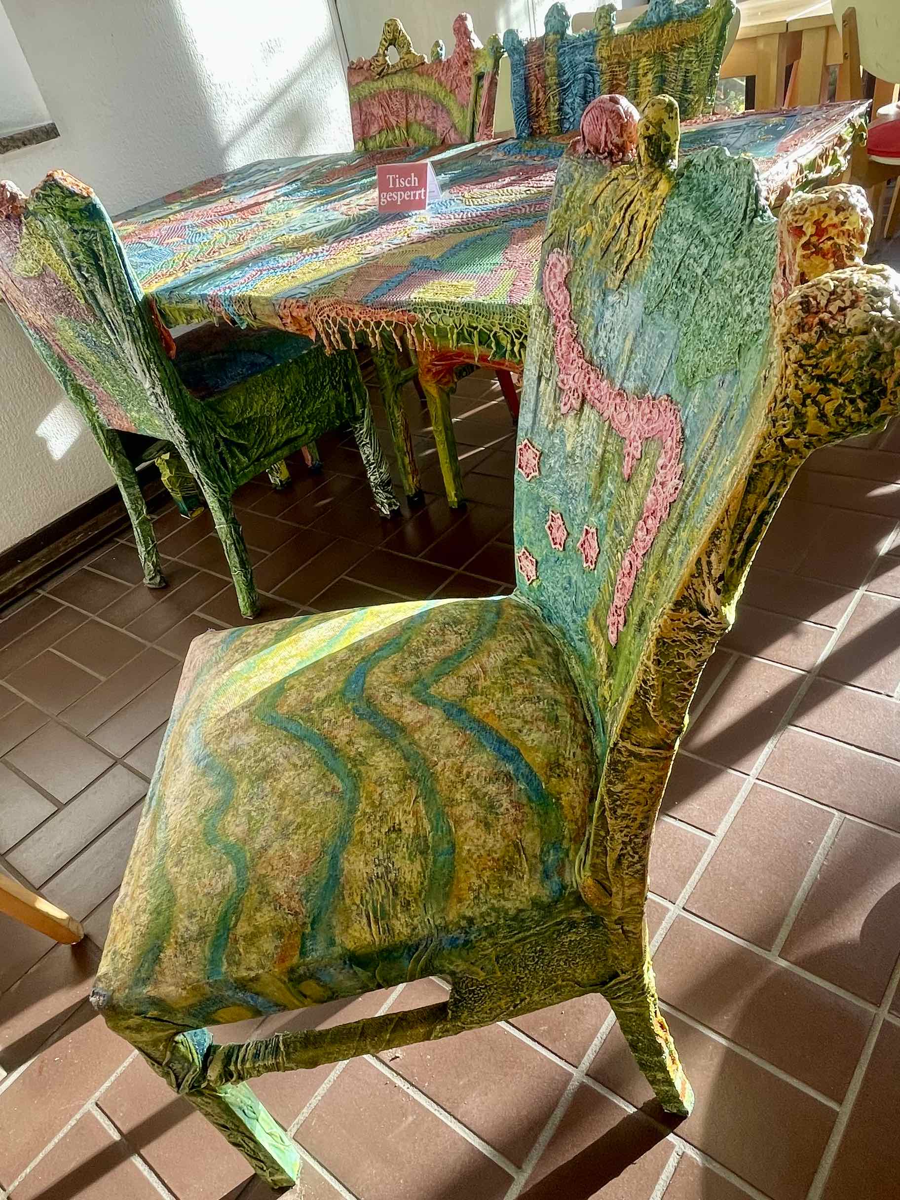 Die 4 majestätischen Stühle runden das Ensemble farbenprächtig ab:
