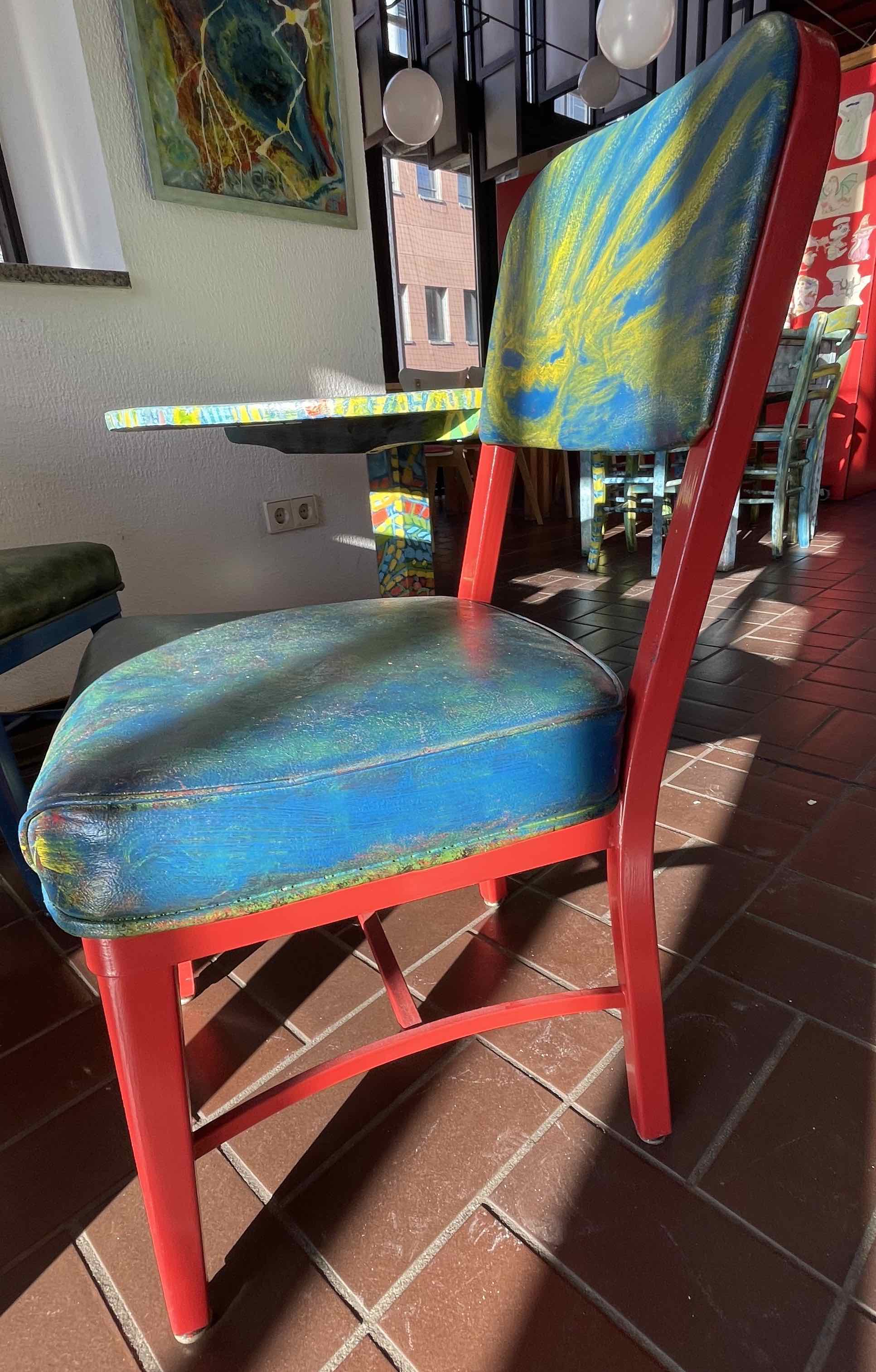 Das Armee-Olivgrün der Stühle wurde dann sehr viel bunter.